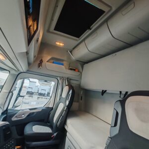 ABS, állítható kartámasz, állófűtés, ASR, automatizált váltó, bluetoothos gyári kihangosítós rádió, ConnecTruck, differenciál zár, dupla üzemanyagtartály, EBS, elektromos ablakok és tükrök, élelmiszer hűtő, ESP, Gyári érintőkijelzős fejegység, kartámasz, két ágy, klíma, központi zár, manuális klíma, multikormány, nappali menetfény, navigáció, sávtartó asszisztens, sebességkorlátozó, súlyhoz állítható vezetőülés, szervókormány, tárcsafék, távirányítós központi zár, tempomat, vészfékasszisztens.