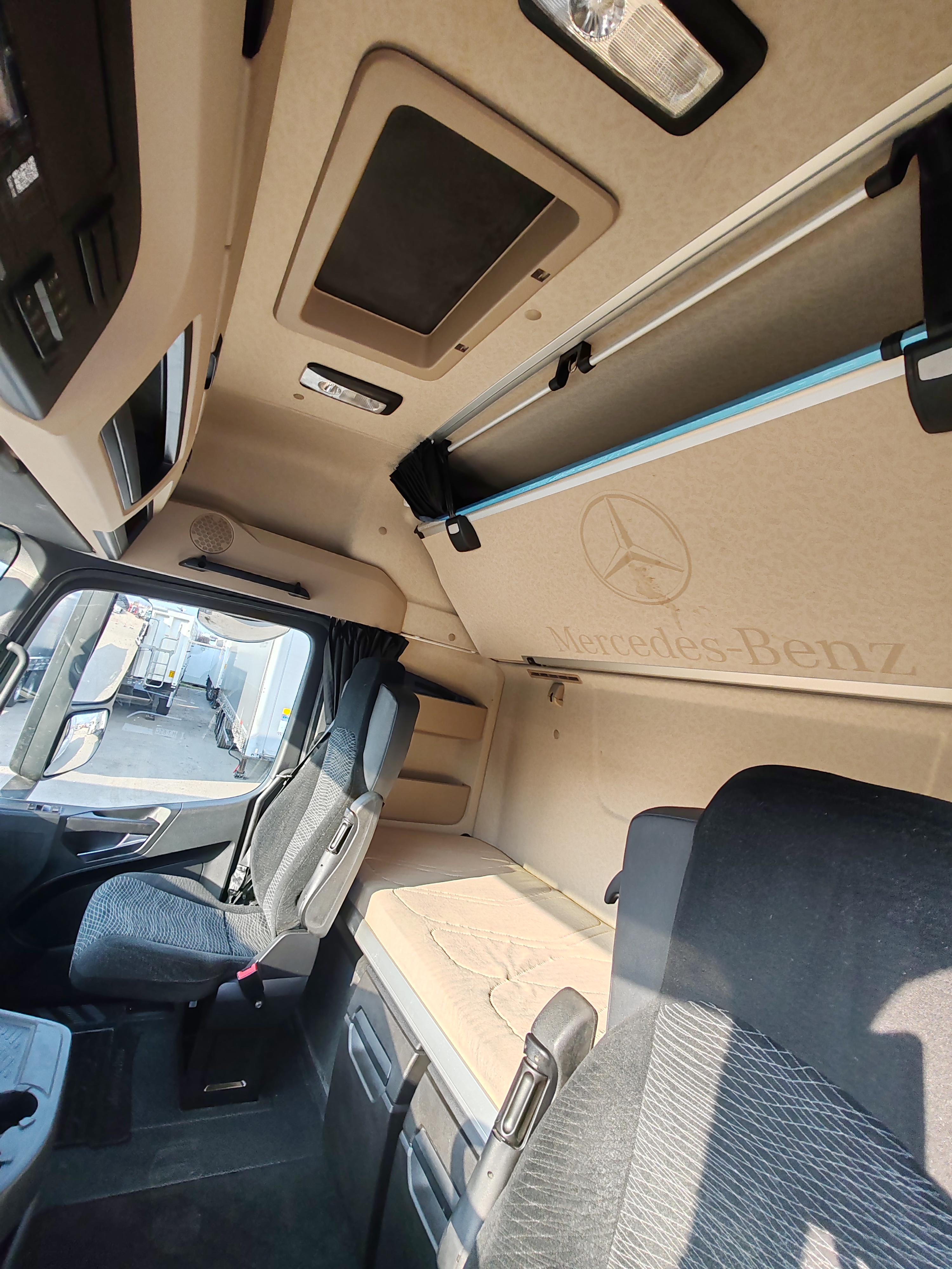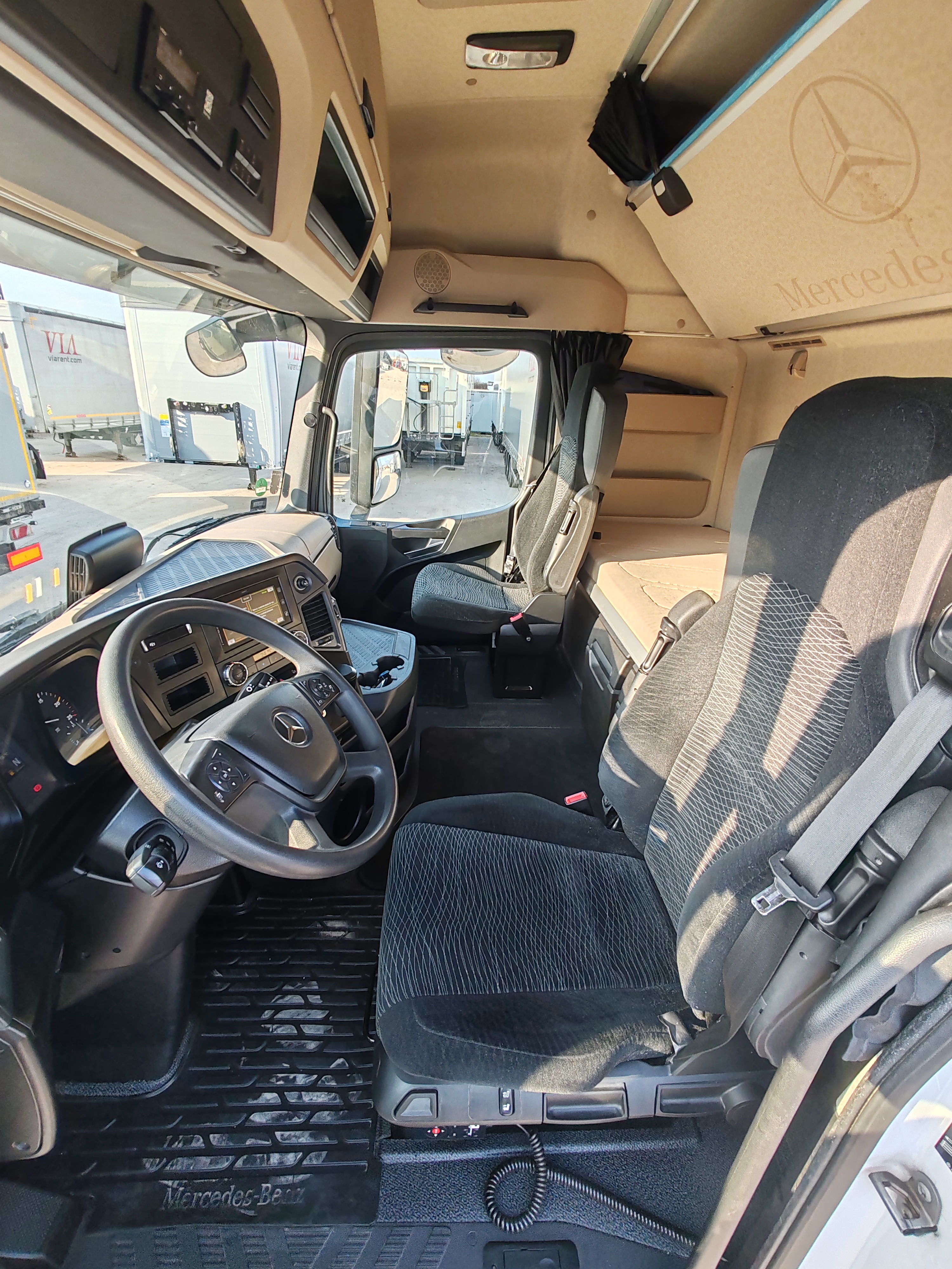 ABS, állófűtés, ASR, automatizált váltó, differenciál zár, dupla üzemanyagtartály, EBS, elektromos ablakok és tükrök, ESP, kartámasz, két ágy, klíma, központi zár, manuális klíma, mega, multikormány, sávtartó asszisztens, sebességkorlátozó, szervókormány, tárcsafék, távirányítós központi zár, tempomat, vészfékasszisztens.