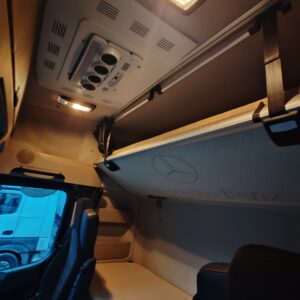 ABS, állófűtés, állóklíma, ASR, automatizált váltó, differenciál zár, dupla üzemanyagtartály, EBS, elektromos ablakok és tükrök, ESP, kartámasz, központi zár, manuális klíma.