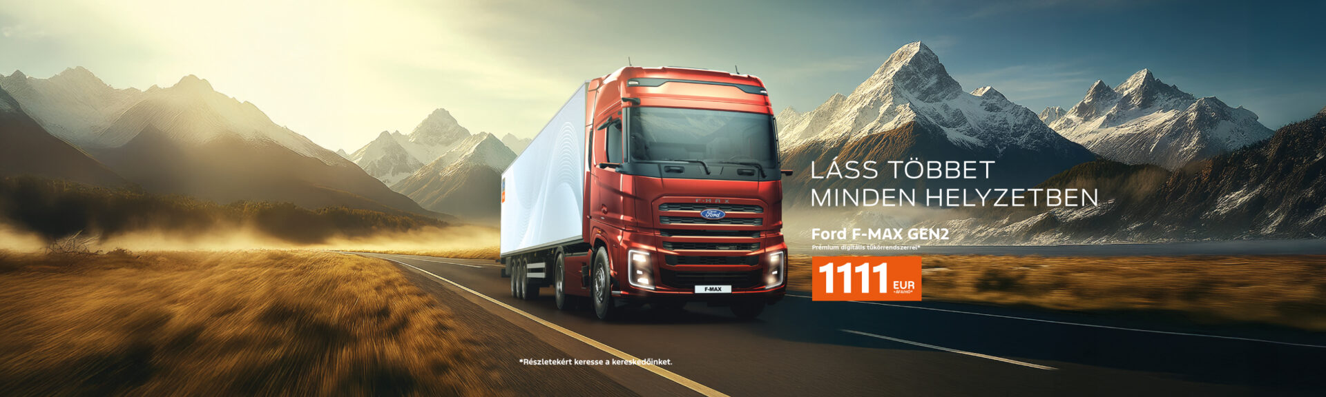 *Ajánlatunk tájékoztató jellegű, részünkről kötelezettség nem terheli, valamint meghatározott felszereltségű F-MAX GEN2 vontatókra vonatkozik. Az akció más kedvezményekkel nem vonható össze. Jelen hirdetés nem minősül ajánlattételnek, a Delta-Truck Kft. az ajánlati kötöttségét kizárja. A végső ajánlattételhez bonitás vizsgálat szükséges. A feltételekről és a részletekről érdeklődjön a Delta-Truck Kft. kereskedőinél.